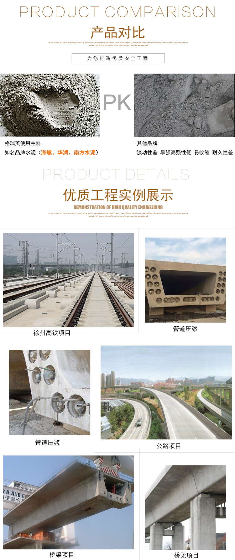 早強(qiáng)高強(qiáng)澆注后1-3天強(qiáng)度高20-50Mpa以上,縮短工期。